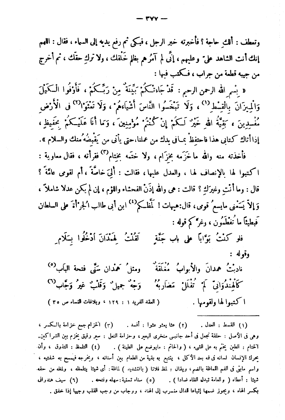 "العقد الفريد 1: 129، وبلاغات النساء ص35"