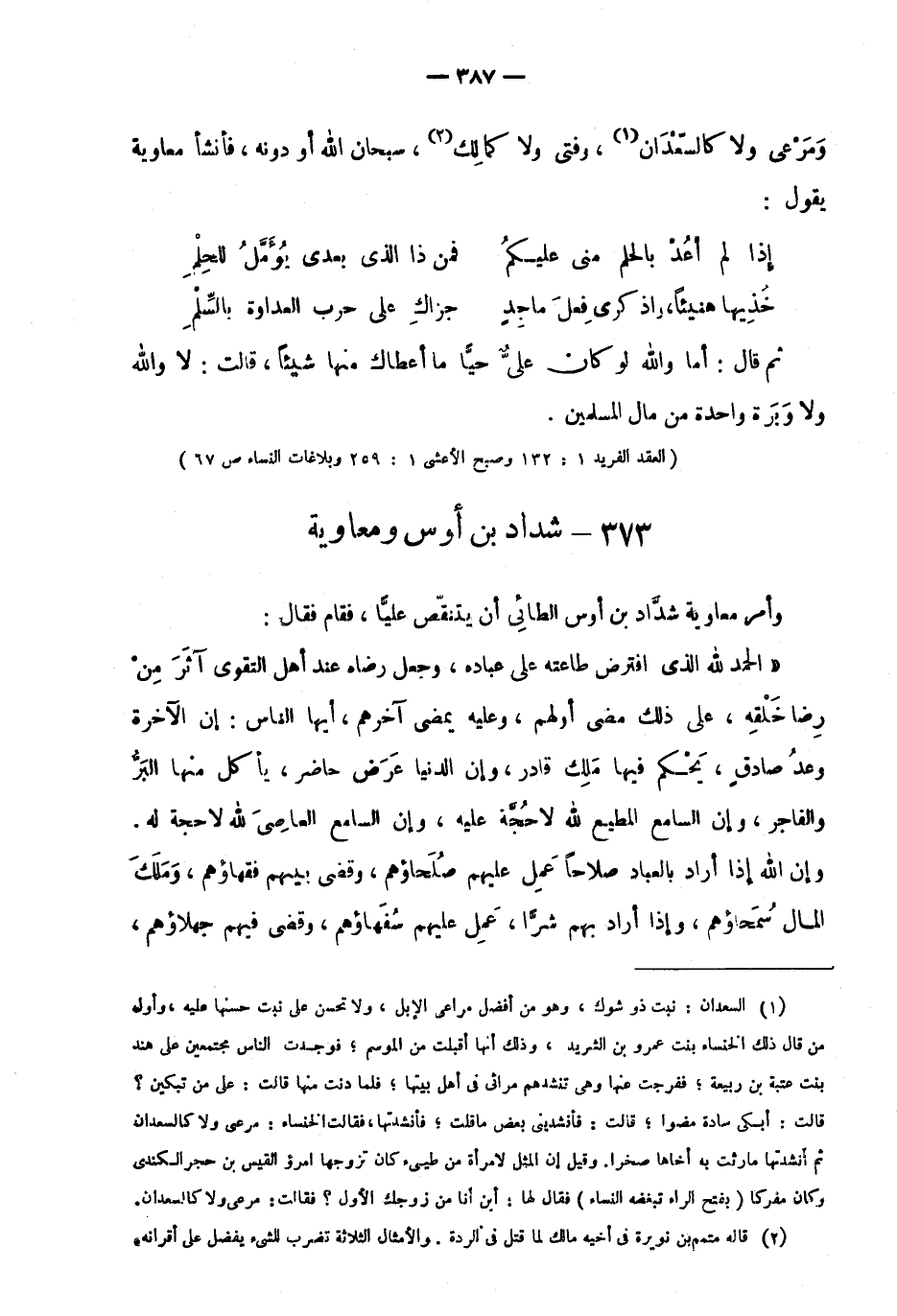"العقد الفريد 1: 132 وصبح الأعشى 1: 259 وبلاغات النساء ص67".