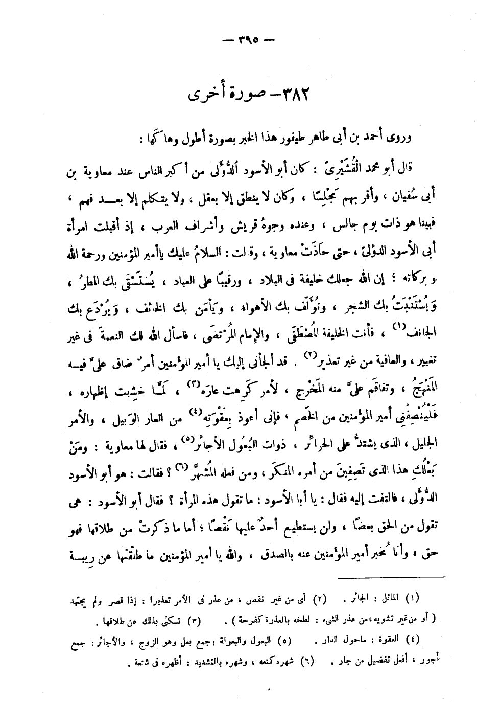 وروى أحمد بن أبي طاهر طيفور هذا الخبر بصورة أطول وهاكها: