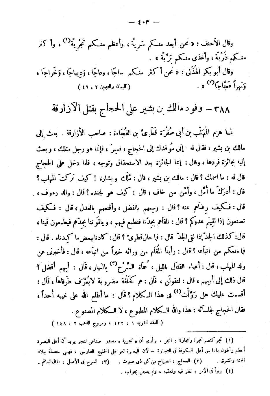 388- وفود مالك بن بشير على الحجاج بقتل الأزارقة: