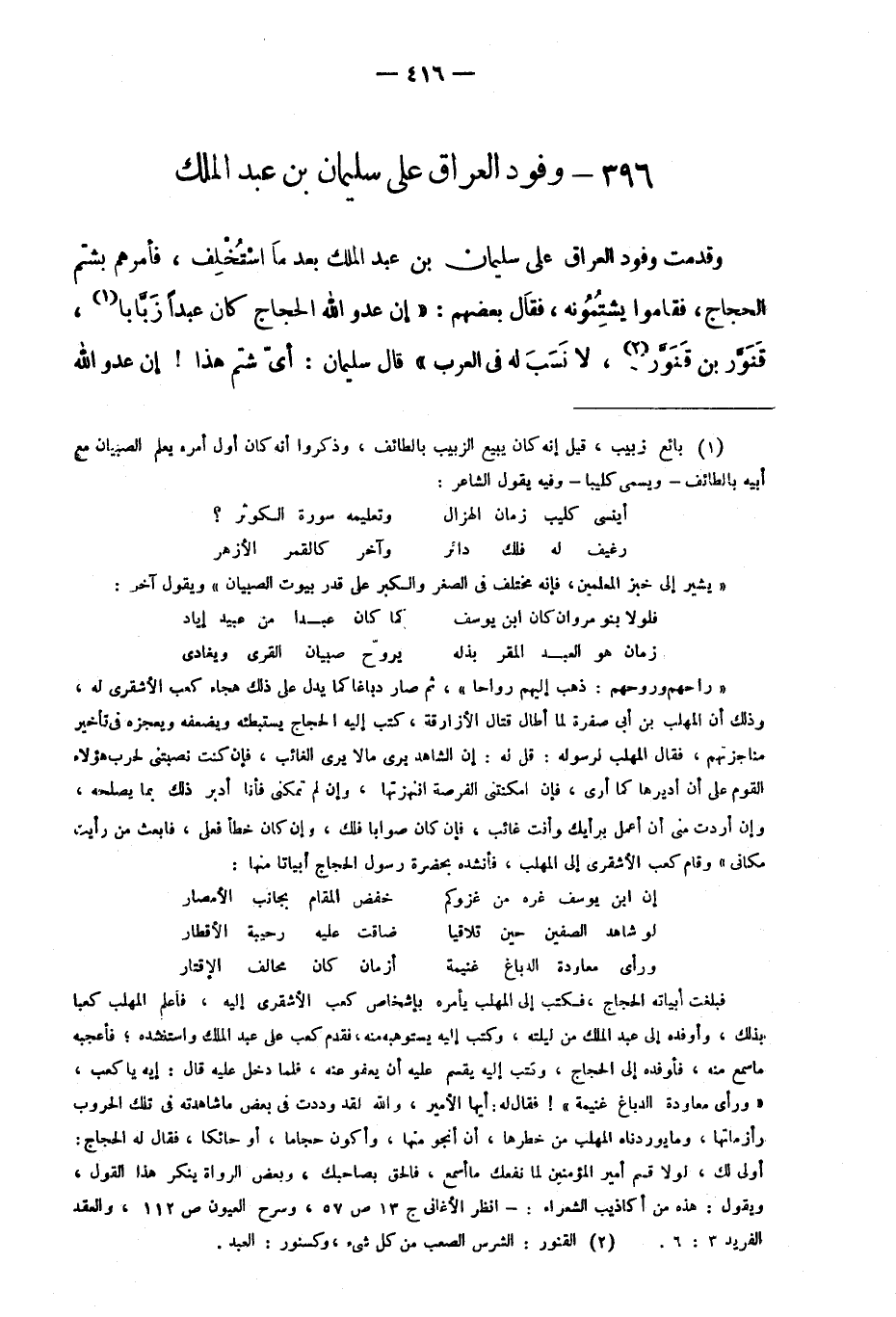 وقدمت وفود العراق على سليمان بن عد الملك بعد ما استخلف؛ فأمرهم بشتم الحجاج، فقاموا يشتمونه، فقال بعضهم: "إن عدو الله الحجاج كان عبدًا زبابًا1، قنور بن قنور2 لا نسب له في العرب" قال سليمان: أي شتم هذا! إن عدو الله