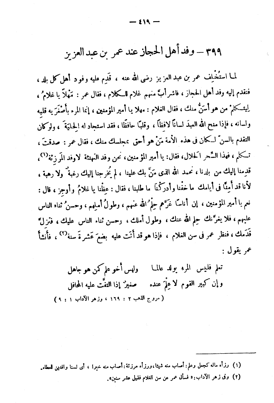 "مروج الذهب 2: 169، وزهر الآداب 1: 9"