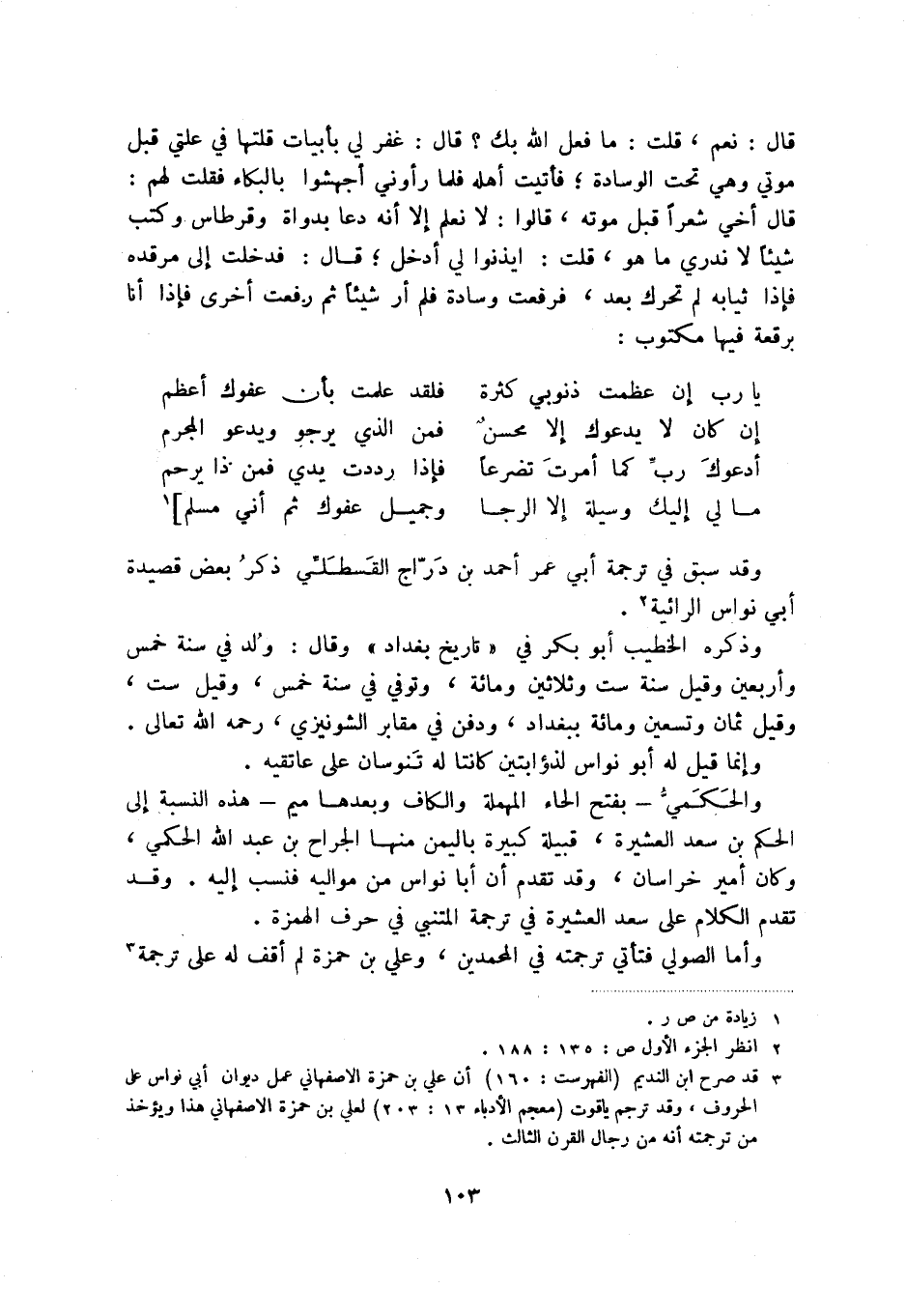 ما لي إليك وسيلة إلا الرجا ... وجميل عفوك ثم أني مسلم] (1) وقد سبق في ترجمة أبي عرم أحمد بن دراج القسطلي ذكر بعض قصيدة أبي نواس الرائية (2) .