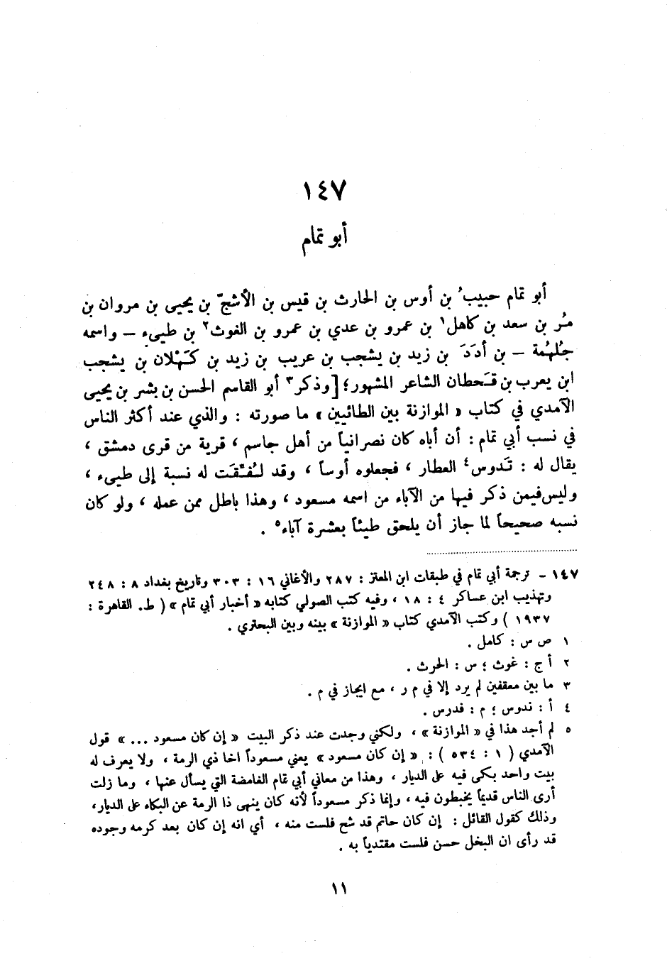 (1) ترجمة أبي تمام في طبقات ابن المعتز: 287 والأغاني 16: 303 وتاريخ بغداد 8: 248 وتهذيب ابن عساكر 4: 18، وفيه كتب الصولي كتابه " أخبار أبي تمام " (ط. القاهرة: 1937) وكتب الآمدي كتاب " الموازنة " بينه وبين البحتري.