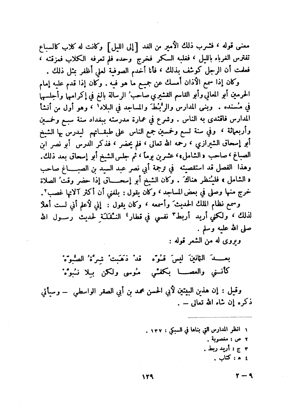 كأنني والعصا بكفي ... موسى ولكن بلا نبوه وقيل: إن هذين البيتين لأبي الحسن محمد بن أبي الصقر الواسطي - وسيأتي ذكره إن شاء الله تعالى -.