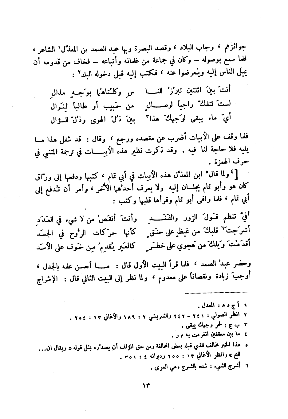 (2) انظر الصولي: 241 - 242 والشريشي 2: 189 والأغاني 13: 254.