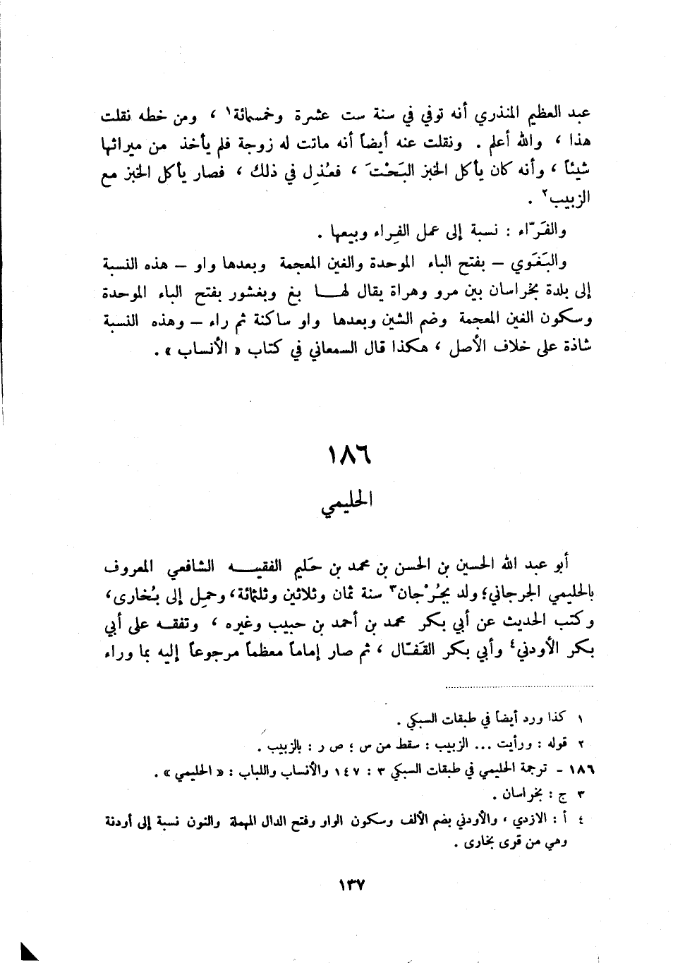 (3) ترجمة الحليمي في طبقات السبكي 3: 147 والأنساب واللباب: " الحليمي ".