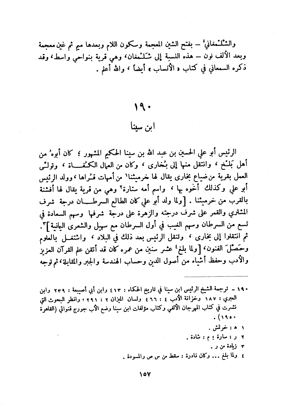 (1) ترجمة الشيخ الرئيس ابن سينا في تاريخ الحكماء: 413 وابن أبي أصيبعة: 239 وابن العبري: 187 وخزانة الأدب 4: 466 ولسان الميزان 2: 291، وانظر البحوث التي نشرت في كتاب المهرجان الألفي وكتاب مؤلفات ابن سينا وضع الأب جورج قنواتي (القاهرة 1950) .