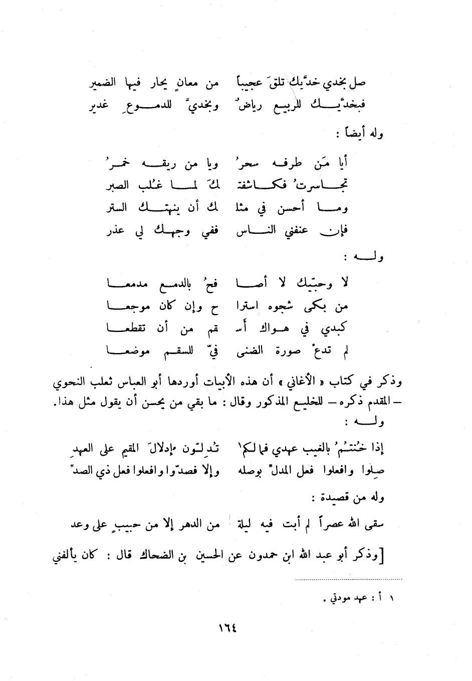 سقى الله عصراً لم أبت فيه ليلة ... من الدهر إلا من حبيب على وعد وذكر أبو عبد الله ابن حمدون عن الحسين بن الضحاك قال: كان يألفني