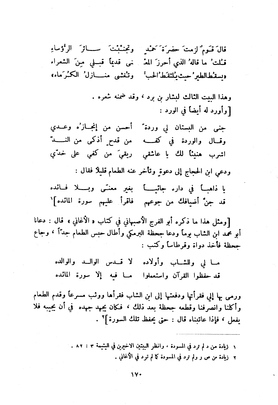 قد جن أضيافك من جوعهم ... فاقرأ عليهم سورة المائدة] (1) [ومثل هذا ما ذكره أبو الفرج الأصبهاني في كتاب " الأغاني " قال: دعانا أبو محمد ابن الشاب يوماً ودعا جحظة البرمكي وأطال حبس الطعام جداً، وجاع جحظة فأخذ دواة وقرطاساً وكتب: