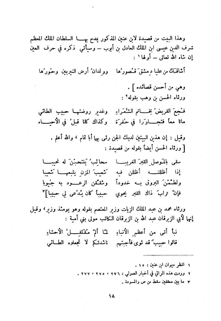 (2) وردت هذه المرائي في أخبار الصولي: 276، 275، 277.