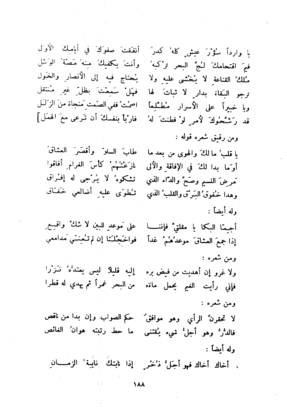 قد رشحوك لأمر لو فطنت له ... فاربأ بنفسك أن ترعى مع الهمل ومن رقيق شعره قوله: