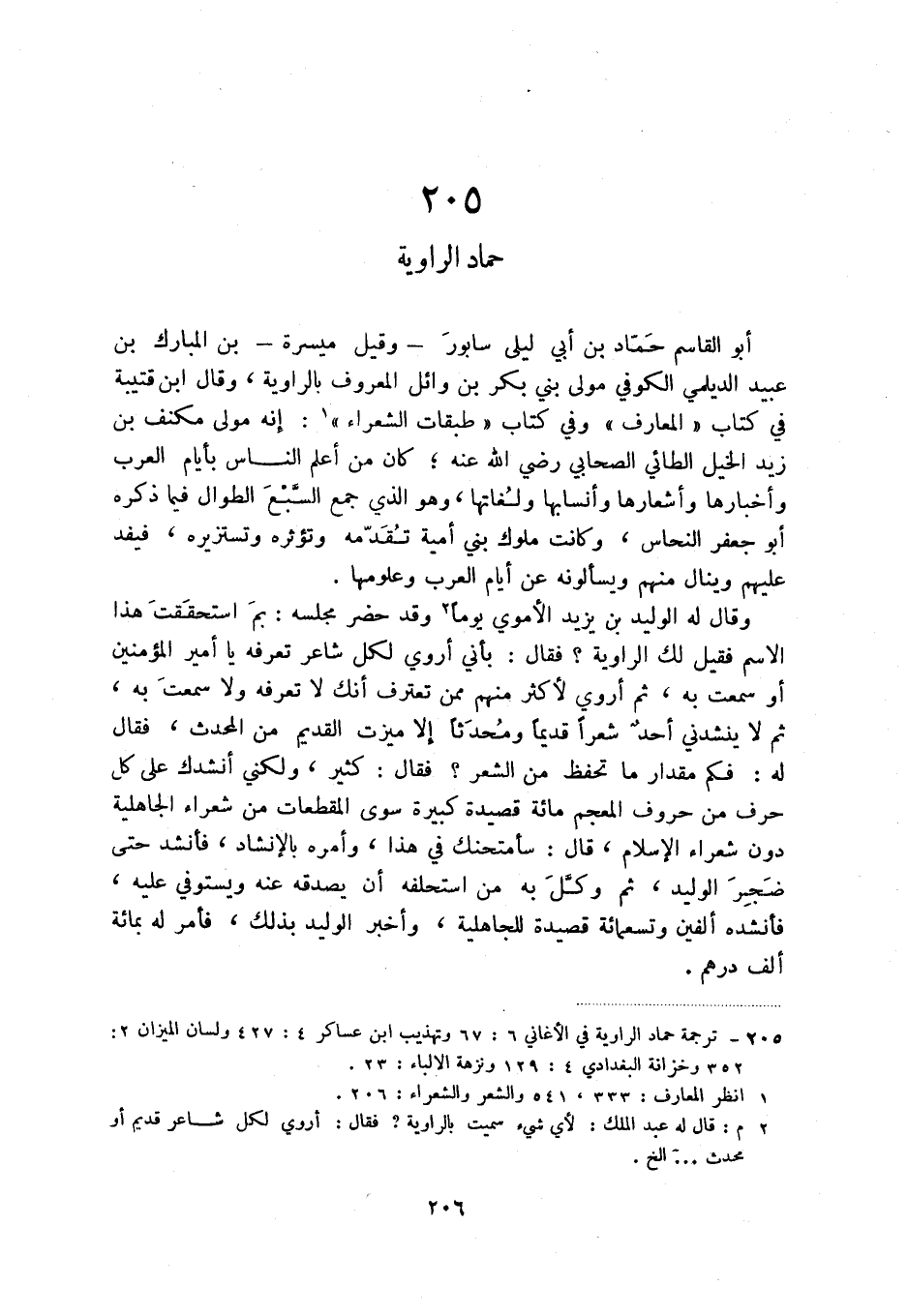 (1) ترجمة حماد الراوية في الأغاني 6: 67 وتهذيب ابن عساكر 4: 427 ولسان الميزان 2: 352 وخزانة البغدادي 4: 129 ونزهة الألباء: 23.