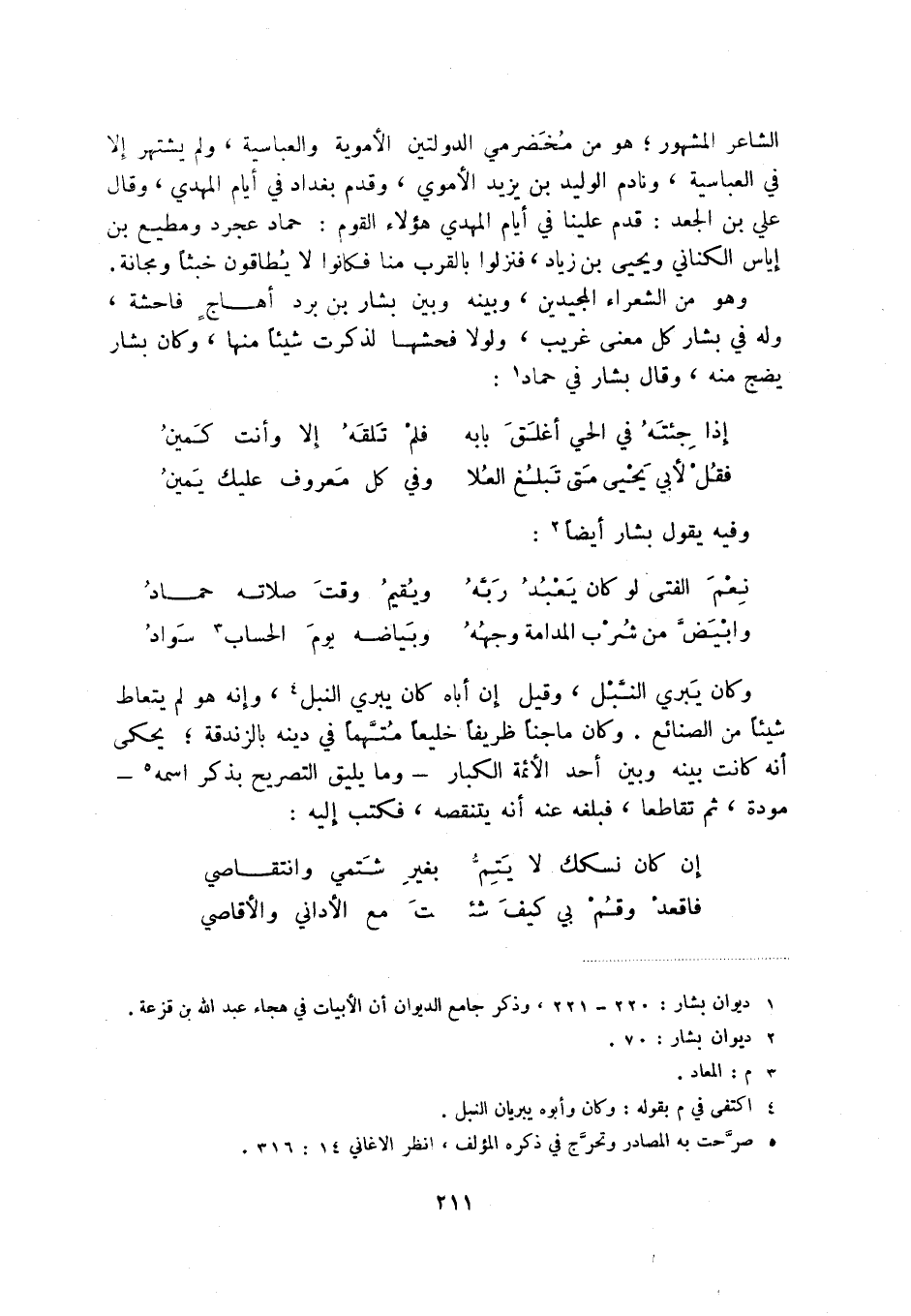 (1) ديوان بشار: 220 - 221، وذكر جامع الديوان أن الأبيات في هجاء عبد الله بن قزعة.