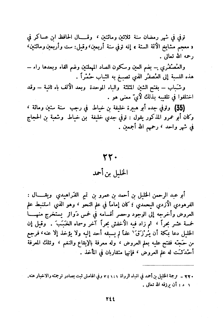 (1) ترجمة الخليل بن أحمد في أنباه الرواة 1: 341 وفي الهامش ثبت بمصادر ترجمته والأخبار عنه.