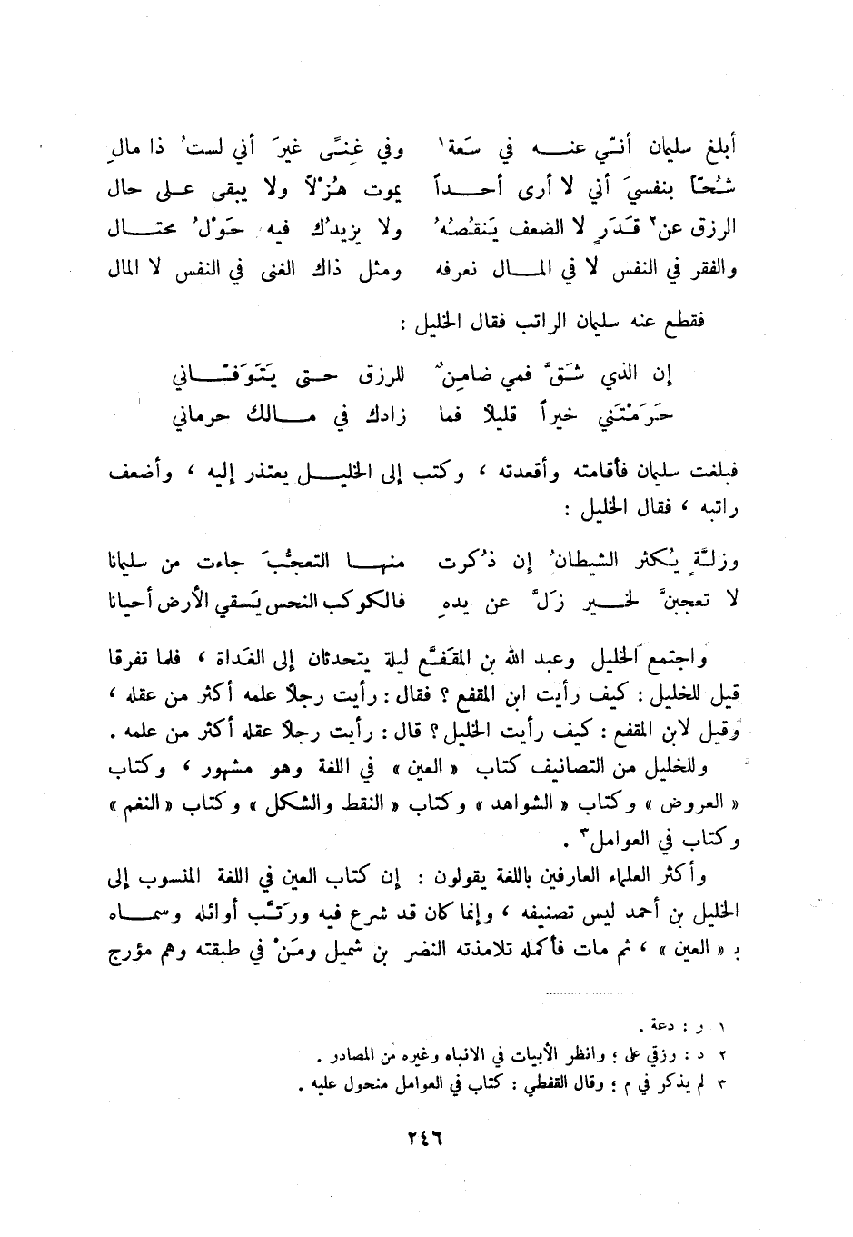 حرمتني خيراً قليلاً فما ... زادك في مالك حرماني فبلغت سليمان فأقامته وأقعدته، وكتب إلى الخليل يعتذر إليه، وأضعف راتبه، فقال الخليل: