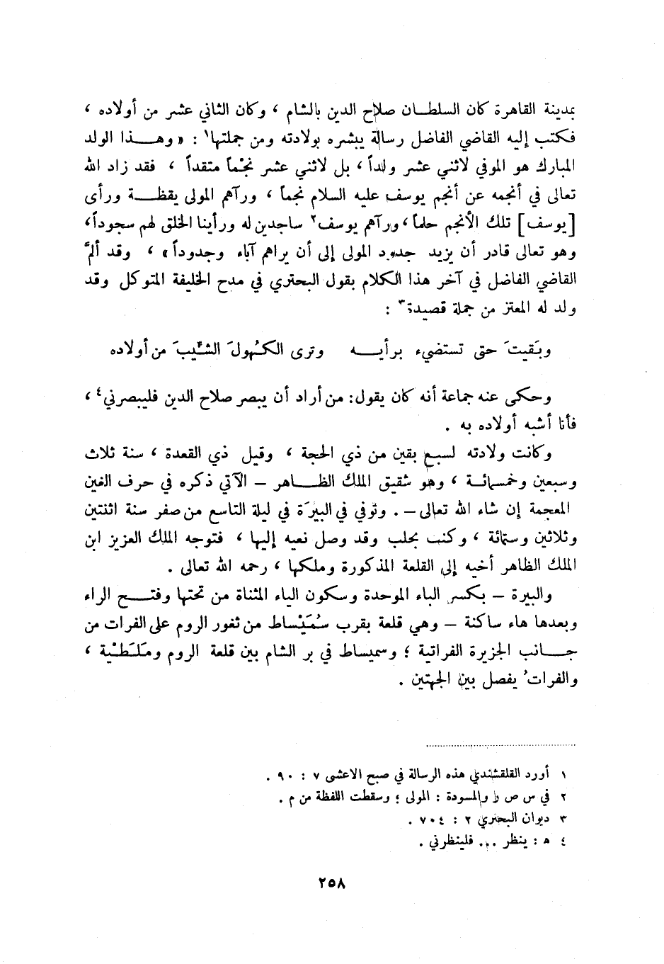وبقيت حتى تستضيء برأيه ... وترى الكهول الشيب من أولاده وحكى عنه جماعة أنه كان يقول: من أراد أن يبصر صلاح الدين فليبصرني (4) ، فأنا أشبه أولاده به.