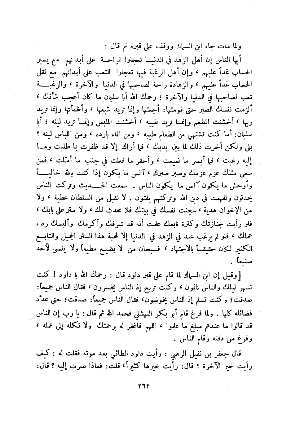 قال جعفر بن نفيل الرهبي: رأيت داود الطائي بعد موته فقلت له: كيف رأيت خير الآخرة قال: رأيت خيرها كثيراً، قلت: فماذا صرت إليه قال: