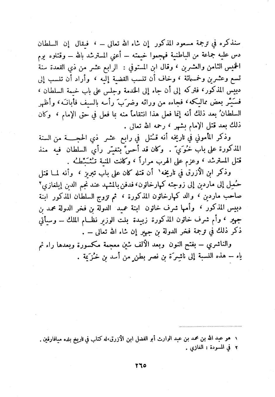 (1) هو عبد الله بن محمد بن عبد الوارث أبو الفضل ابن الأزرق، له كتاب في تاريخ بلده ميافارقين.