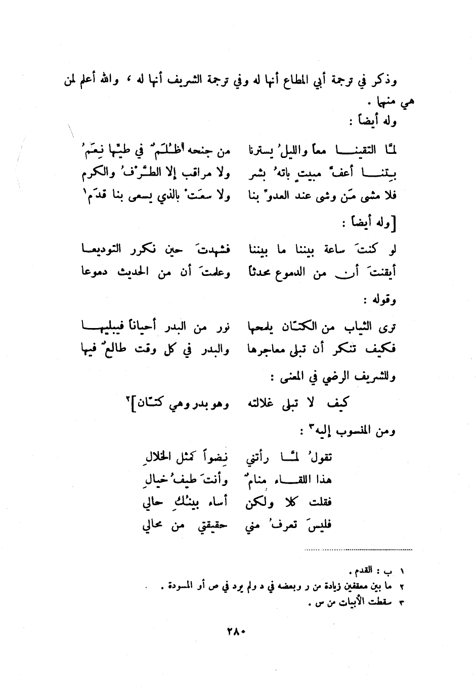 وذكر في ترجمة أبي المطاع أنها له وفي ترجمة الشريف أنها له، والله أعلم لمن هي منهما.