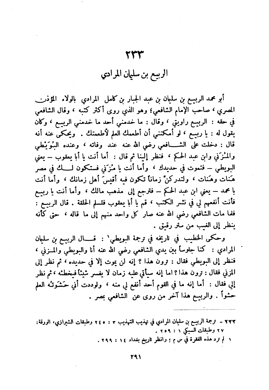 (1) ترجمة الربيع بن سليمان المرادي في تهذيب التهذيب 3: 245 وطبقات الشيرازي، الورقة: 27 وطبقات السبكي 1: 259.