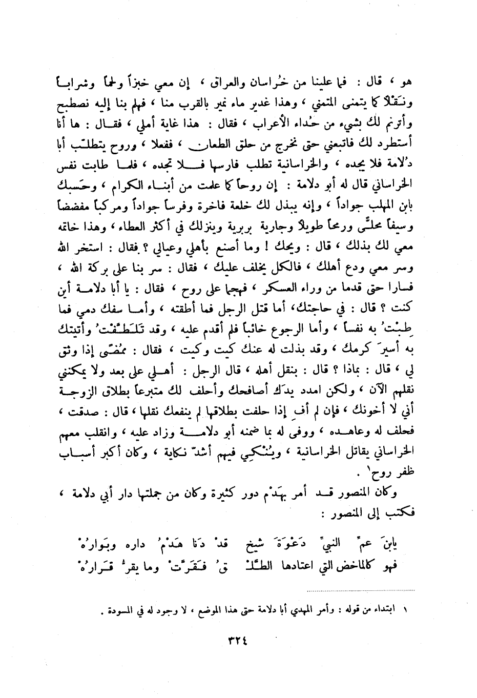 (1) ابتداء من قوله: وأمر المهدي أبا دلامة حتى هذا الموضع، لا وجود له في المسودة.