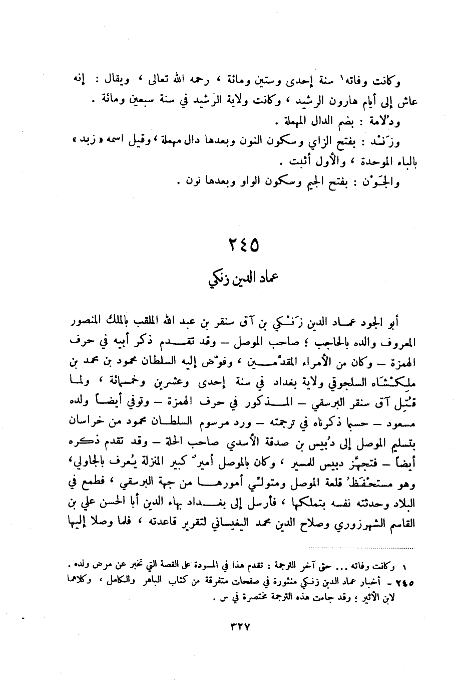 (2) أخبار عماد الدين زنكي منثورة في صفحات متفرقة من كتاب الباهر والكامل، وكلاهما لابن الأثير؛ وقد جاءت هذه الترجمة مختصرة في س.