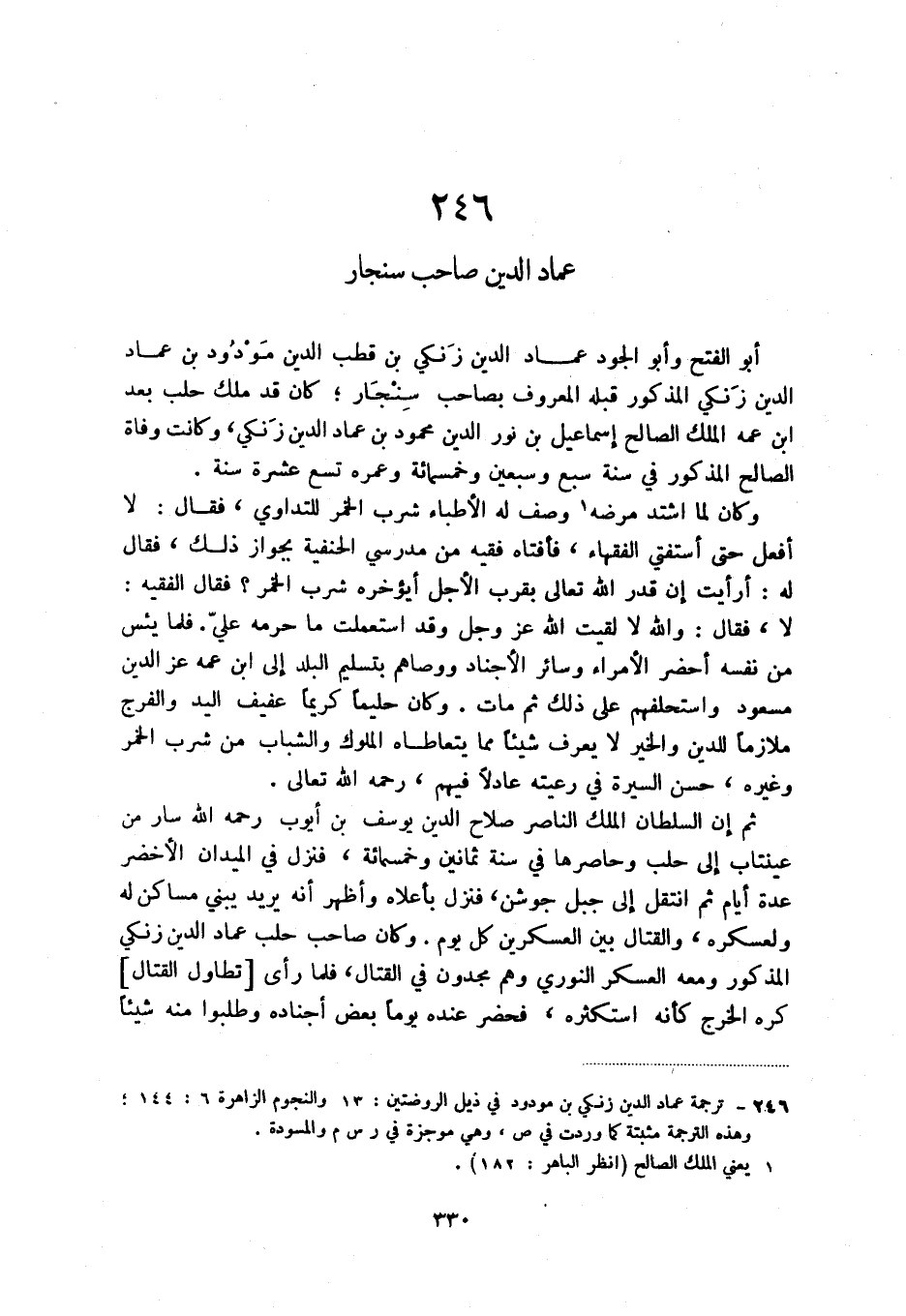 (1) ترجمة عماد الدين زنكي بن مودود في ذيل الروضتين: 13 والنجوم الزاهرة 6: 144؛ وهذه الترجمة مثبتة كما وردت في ص، وهي موجزة في ر س م والمسودة.