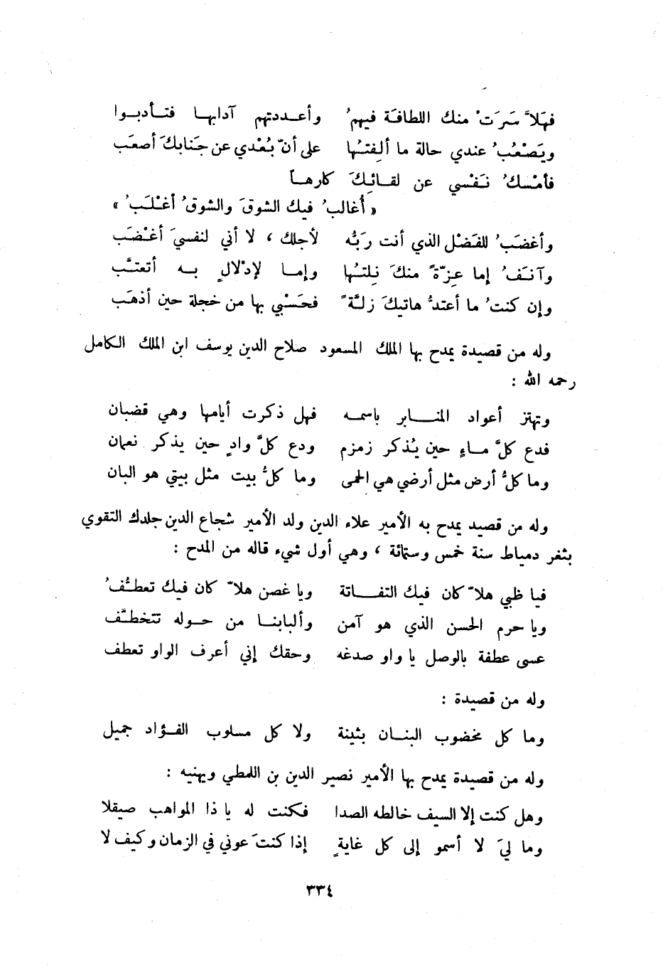 وإن كنت ما أعتد هاتيك زلة ... فحسبي بها من خجلة حين أذهب وله من قصيدة يمدح بها الملك المسعود صلاح الدين يوسف ابن الملك الكامل رحمه الله: