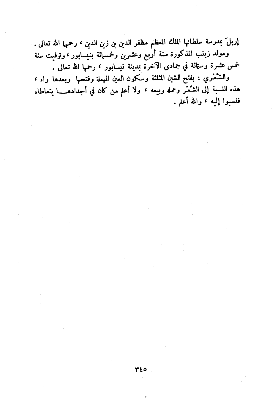 والشعري: بفتح الشين المثلثة وسكون العين المهملة وفتحها وبعدها راء، هذه النسبة إلى الشعر وعمله وبيعه، ولا أعلم من كان في أجدادها يتعاطاه فنسبوا إليه، والله أعلم.