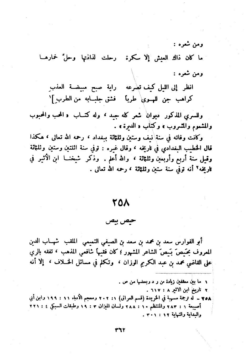 (3) له ترجمة مسهبة في الخريدة (قسم العراق) 1: 202 ومعجم الأدباء 11: 199 وابن أبي أصيبعة 1: 283 والمنتظم 10: 288 ولسان الميزان 3: 19 وطبقات السبكي 4: 231 والبداية والنهاية 12: 301.