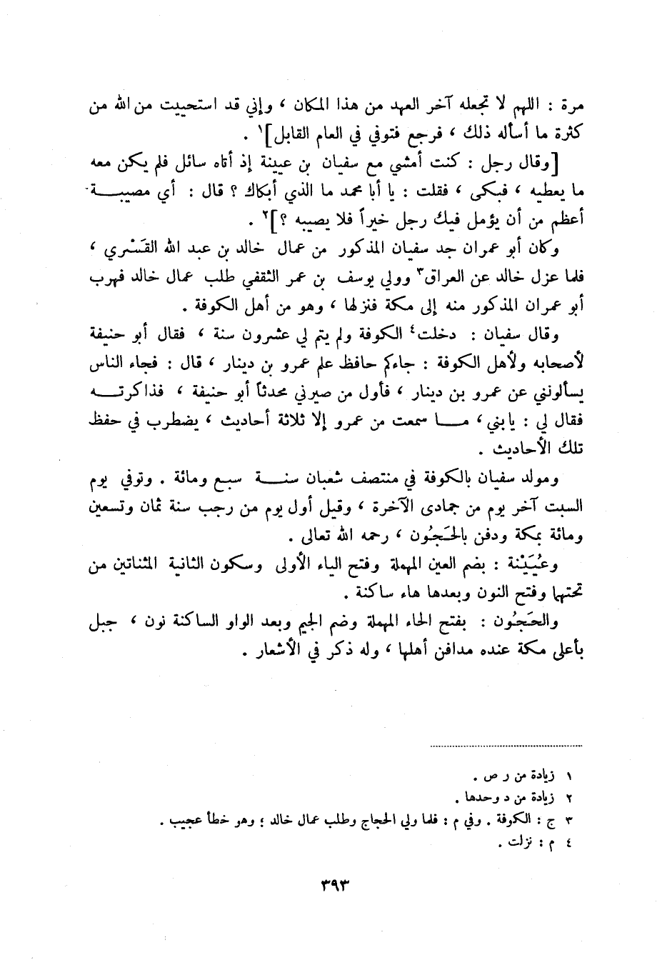 وكان أبو عمران جد سفيان المذكور من عمال خالد بن عبد الله القسري، فلما عزل خالد عن العراق (3) وولي يوسف بن عمر الثقفي طلب عمال خالد فهرب أبو عمران المذكور منه إلى مكة فنزلها، وهو من أهل الكوفة.