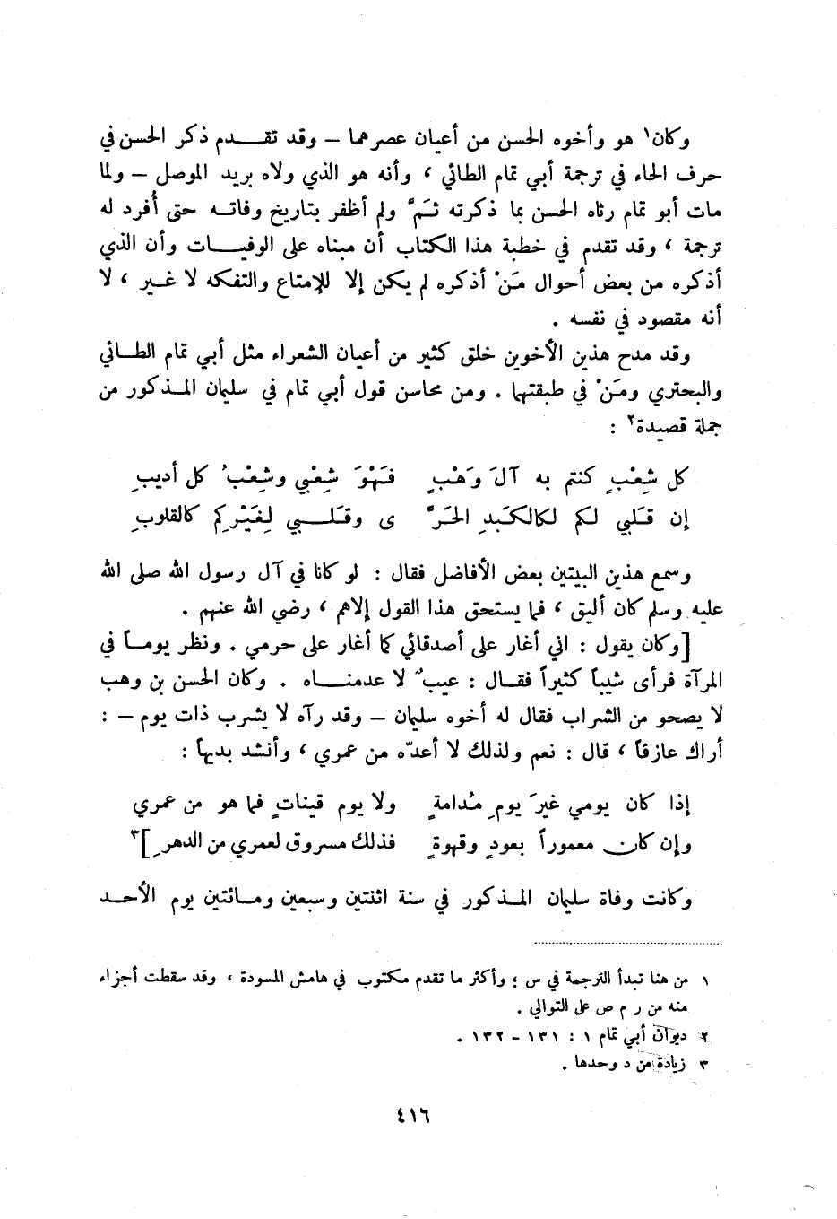 وإن كان معموراً بعود وقهوة ... فذلك مسروق لعمري من الدهر] (3) وكانت وفاة سليمان المذكور في سنة اثنتين وسبعين ومائتين يوم الأحد