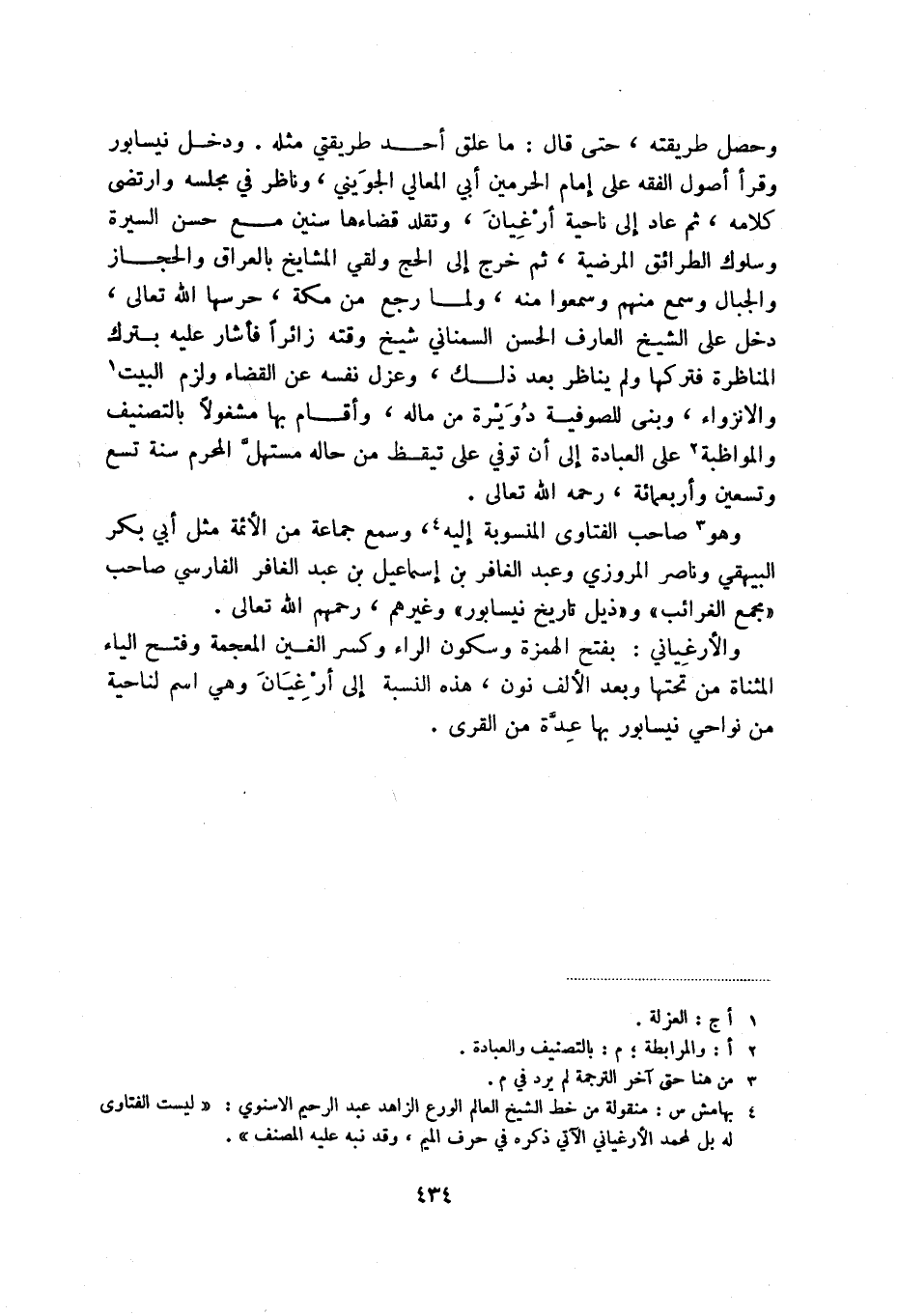 (4) بهامش س: منقولة من خط الشيخ العالم الورع الزاهد عبد الرحيم الأسنوي: " ليست الفتاوى له بل لمحمد الأرغياني الآتي ذكره في حرف الميم، وقد نبه عليه المصنف ".