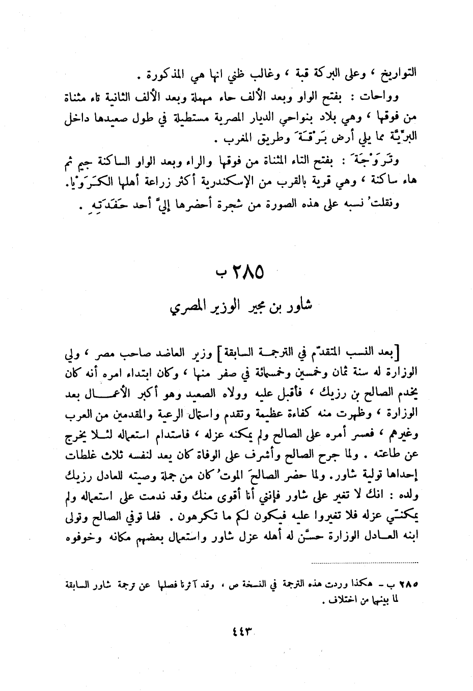 (1) هكذا وردت هذه الترجمة في النسخة ص، وقد آثرنا فصلها عن ترجمة شاور السابقة لما بينهما من اختلاف.