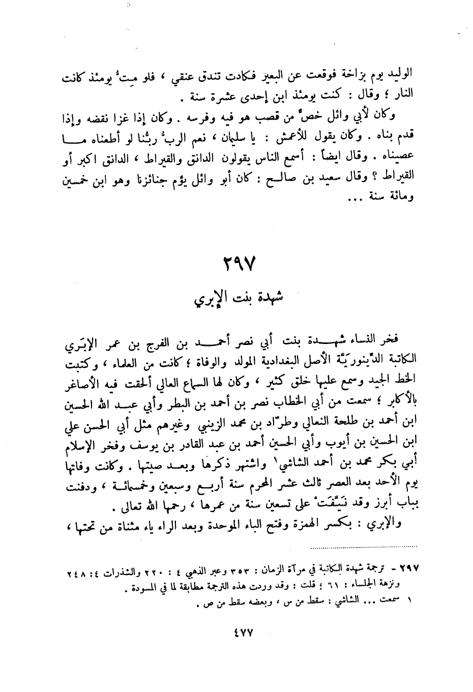 (1) ترجمة شهدة الكاتبة في مرآة الزمان: 353 وعبر الذهبي 4: 220 والشذرات 4: 248 ونزهة الجلساء: 61؛ قلت: وقد وردت هذه الترجمة مطابقة لما في المسودة.