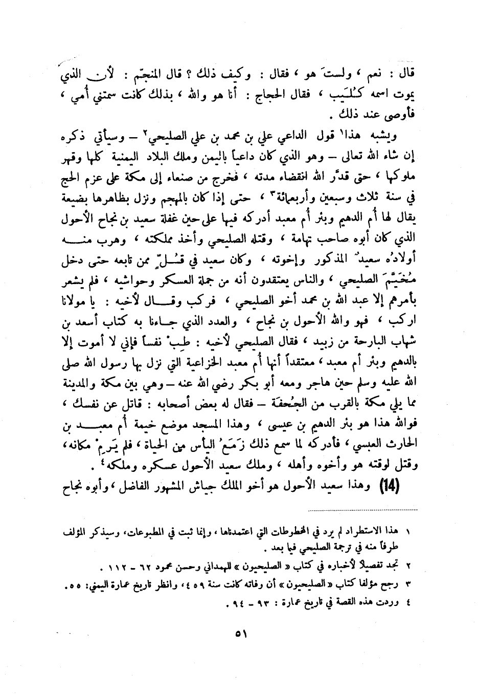(2) تجد تفصيلاً في كتاب " الصليحيون " للهمداني وحسن محمود 62 - 112.