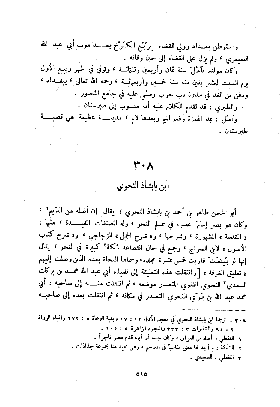 (1) ترجمة ابن باشباذ النحوي في معجم الأدباء 12: 17 وبغية الوعاة 5: 272 وانباه الرواة 2: 95 والشذرات 3: 333 والنجوم الزاهرة 5: 105.