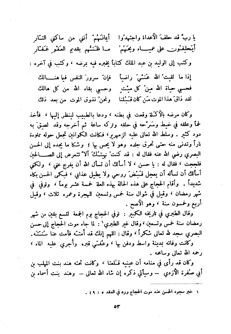 (1) خبر سجود الحسن عند موت الحجاج ورد في العقد 5: 49.