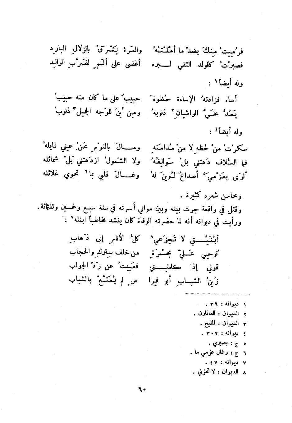 ورأيت في ديوانه أنه لما حضرته الوفاة كان ينشد مخاطباً ابنته (7) :