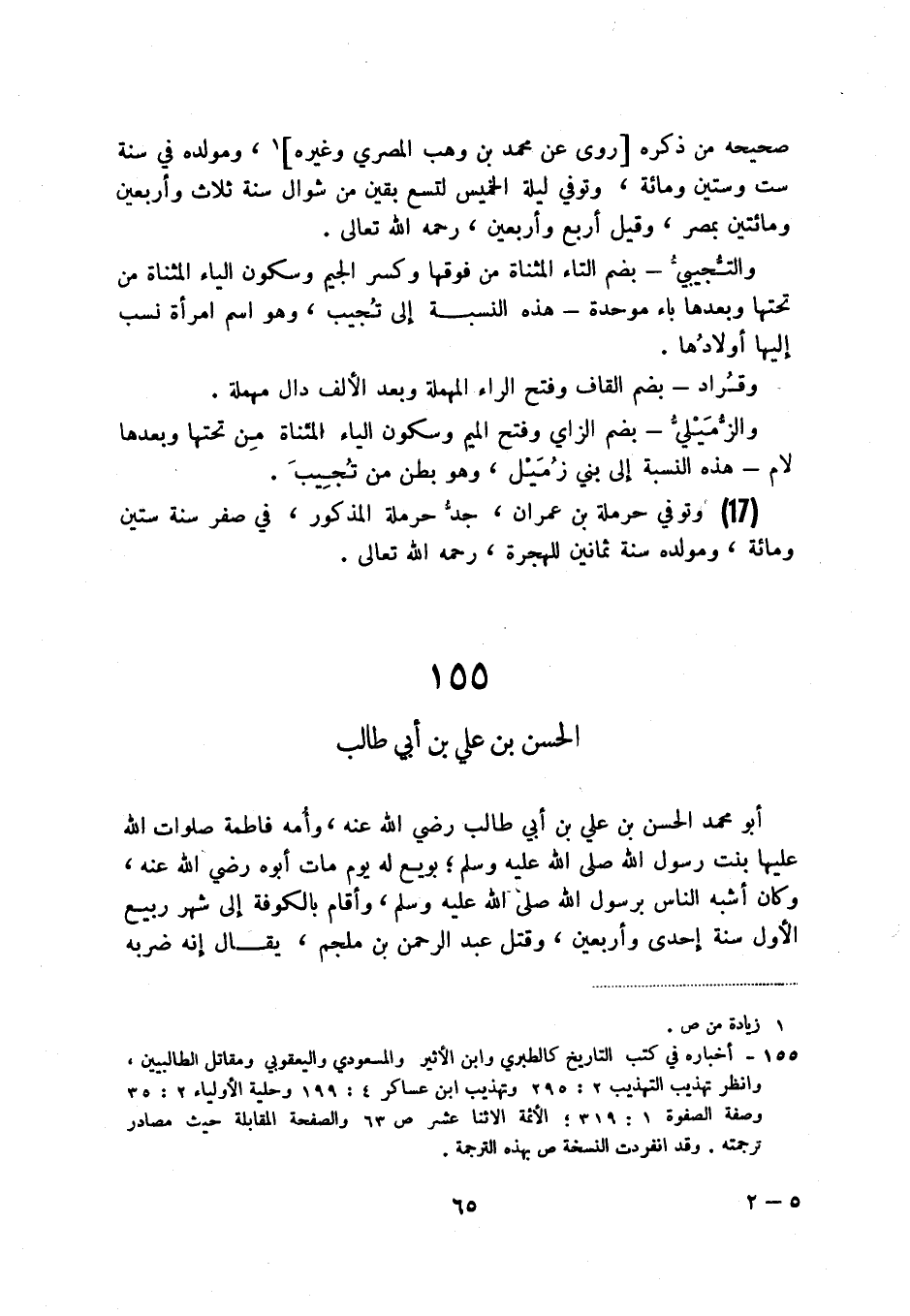 (2) أخباره في كتب التاريخ كالطبري وابن الأثير والمسعودي واليعقوبي ومقاتل الطالبيين، وانظر تهذيب التهذيب 2: 295 وتهذيب ابن عساكر 4: 199 وحلية الأولياء 2: 35 وصفة الصفوة 1: 319؛ الأئمة الأثنا عشر ص 63 والصفحة المقابلة حيث مصادر ترجمته. وقد انفردت النسخة ص بهذه الترجمة.