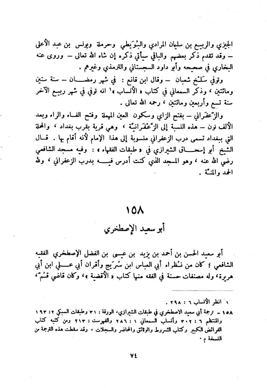 (2) ترجمة أبي سعيد الاصطخري في طبقات الشيرازي، الورقة: 31 وطبقات السبكي 2: 193 والمنتظم 6: 302 وأنساب السمعاني 1: 286 والفهرست: 213 ومن كتبه كتاب الفرائض الكبير وكتاب الشروط والوثائق والمحاضر والسجلات، وقد سقطت هذه الترجمة من النسخة م.