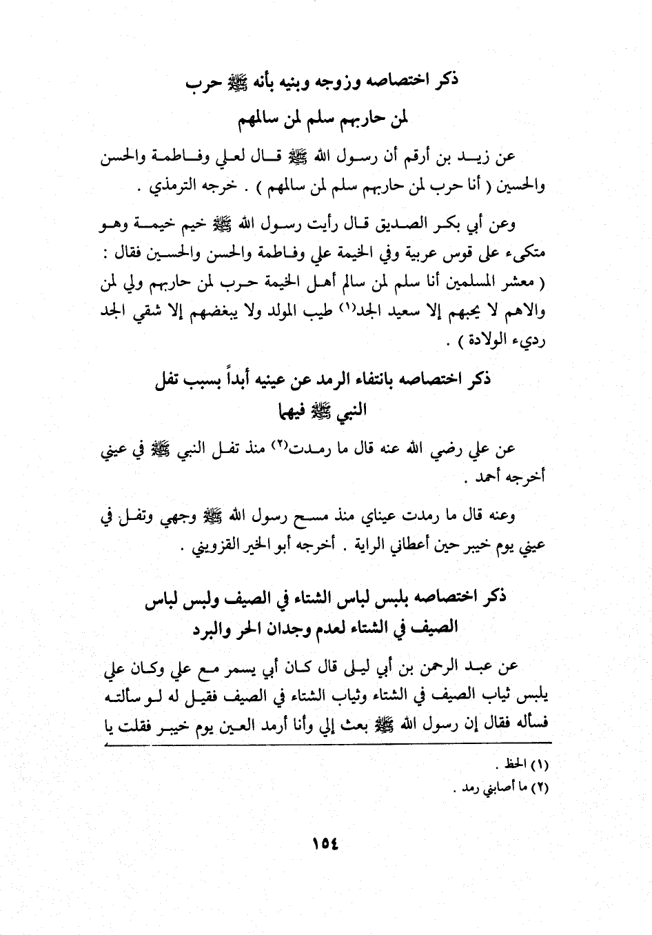 ذكر اختصاصه وزوجه وبنيه بأنه -صلى الله عليه وسلم- حرب لمن حاربهم, سلم لمن سالمهم: