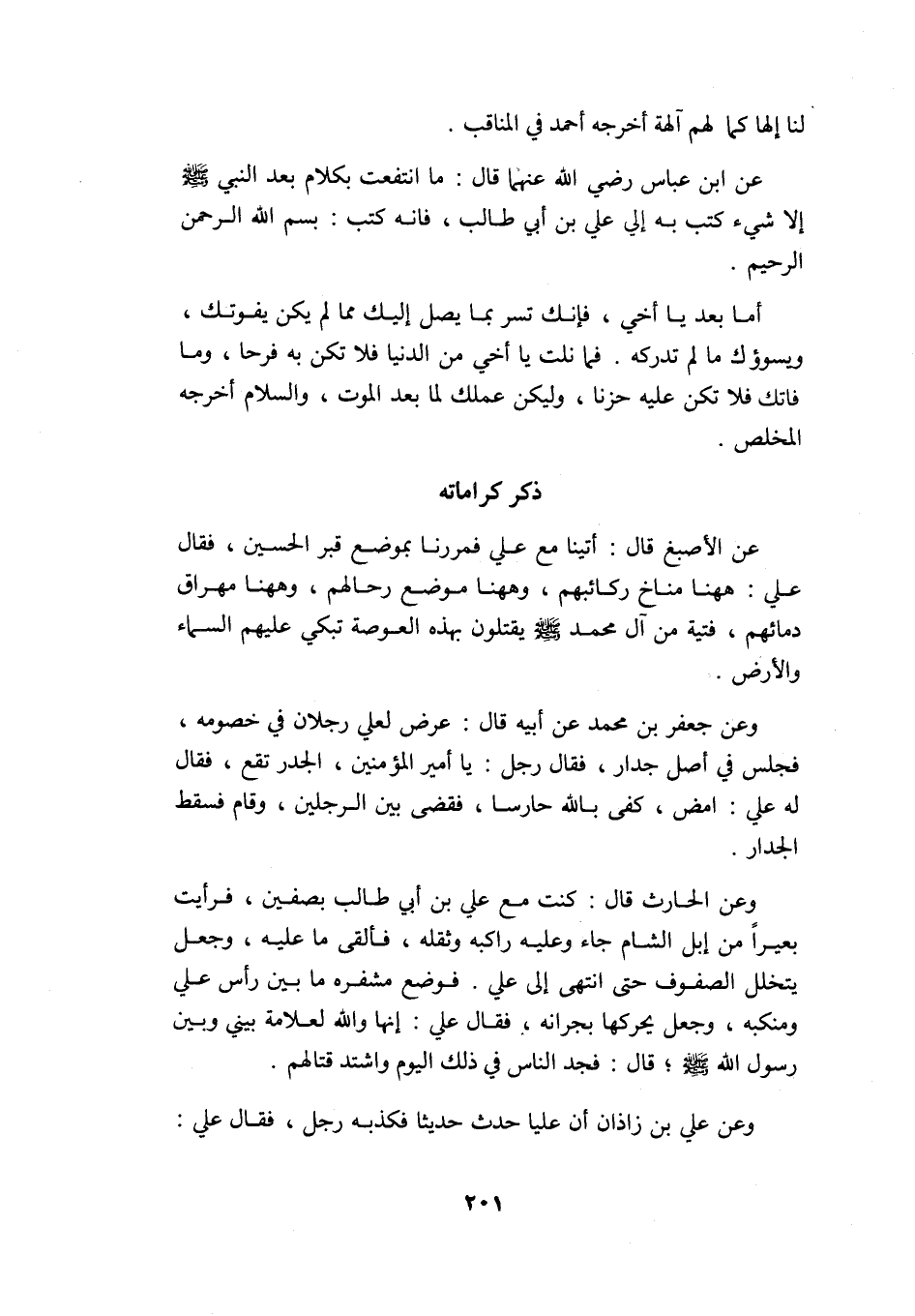 عن ابن عباس -رضي الله عنهما- قال: ما انتفعت بكلام بعد النبي -صلى الله عليه وسلم- إلا بشيء كتب به إلي علي بن أبي طالب، فإنه كتب: بسم الله الرحمن الرحيم.
