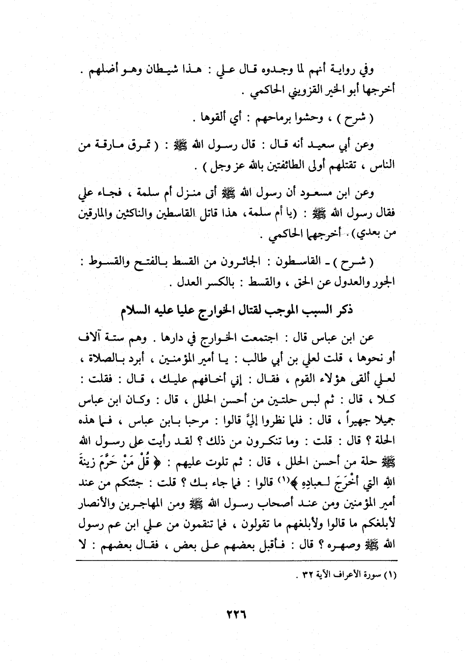 ذكر السبب الموجب لقتال الخوارج عليًّا -عليه السلام: