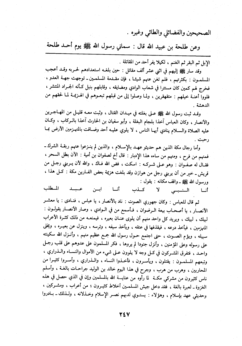 وعن طلحة بن عبيد الله قال: سماني رسول الله -صلى الله عليه وسلم- يوم أحد طلحة