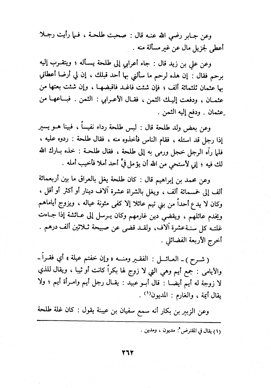 وعن الزبير بن بكار أنه سمع سفيان بن عيينة يقول: كانت غلة طلحة
