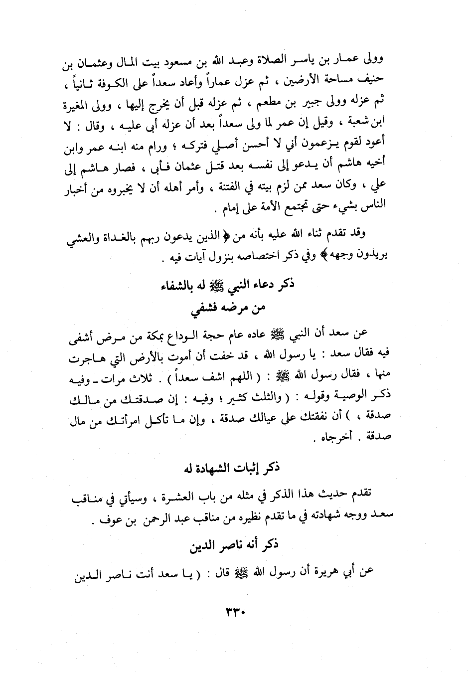 عن أبي هريرة أن رسول الله -صلى الله عليه وسلم- قال: "يا سعد, أنت ناصر الدين