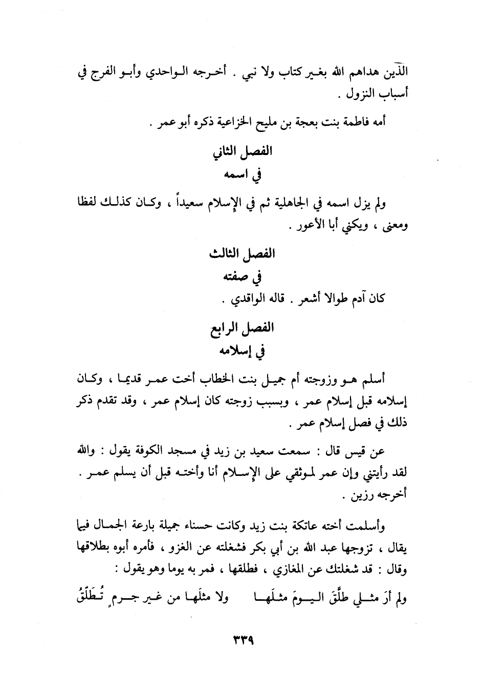 عن قيس قال: سمعت سعيد بن زيد في مسجد الكوفة يقول: والله لقد رأيتني وإن عمر لموثقي على الإسلام أنا وأخته, قبل أن يسلم عمر. أخرجه رزين.