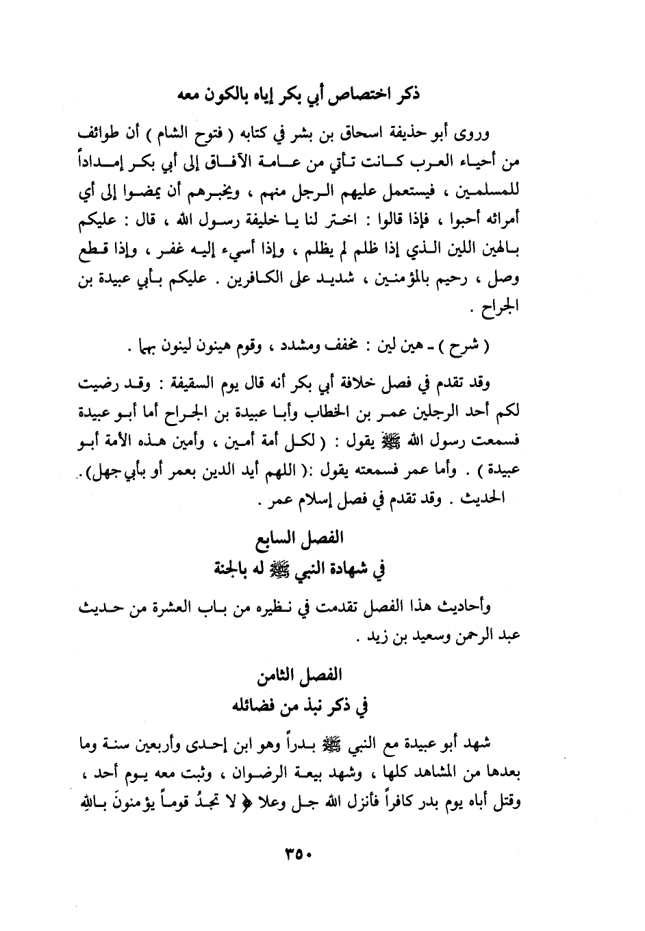 الفصل السابع: في شهادة النبي -صلى الله عليه وسلم- له بالجنة